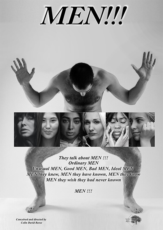 Each of them reacts in a different way. Some want to just leave but one suddenly suggests that, as this is supposed to be a show about Men and each of them has experiences of men as well as being professional performers, they could improvise a show for the audience in front of them. The youngest is immediately captivated by the idea and enlists the approval of the audience to help persuade the others.